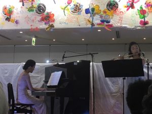 10/27 「”にょきっと″カラフルアート体験!」で制作された作品が展示された舞台で、彩りコンサートは開催されました。