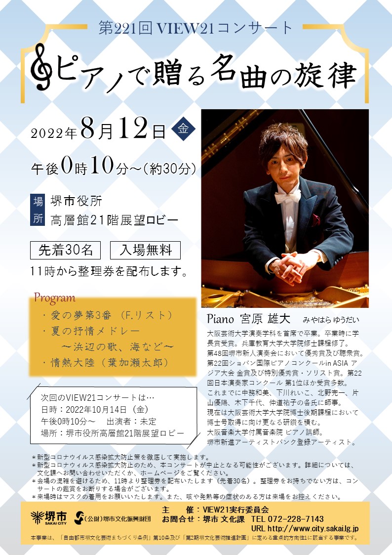 ピアノの宮原雄大さんが「VIEW21コンサート」に出演します!