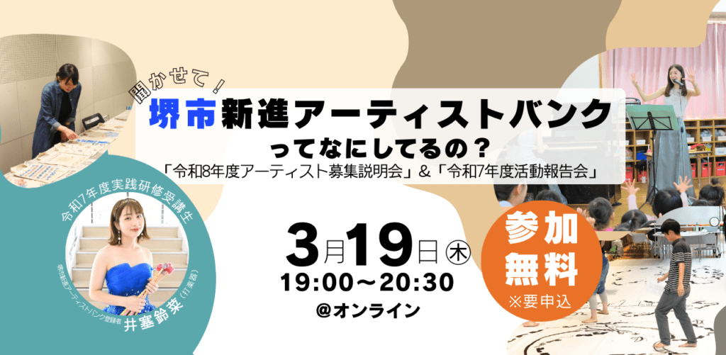 堺市新進アーティストバンク「令和8年度アーティスト募集説明会」&「令和7年度活動報告会」を実施します!