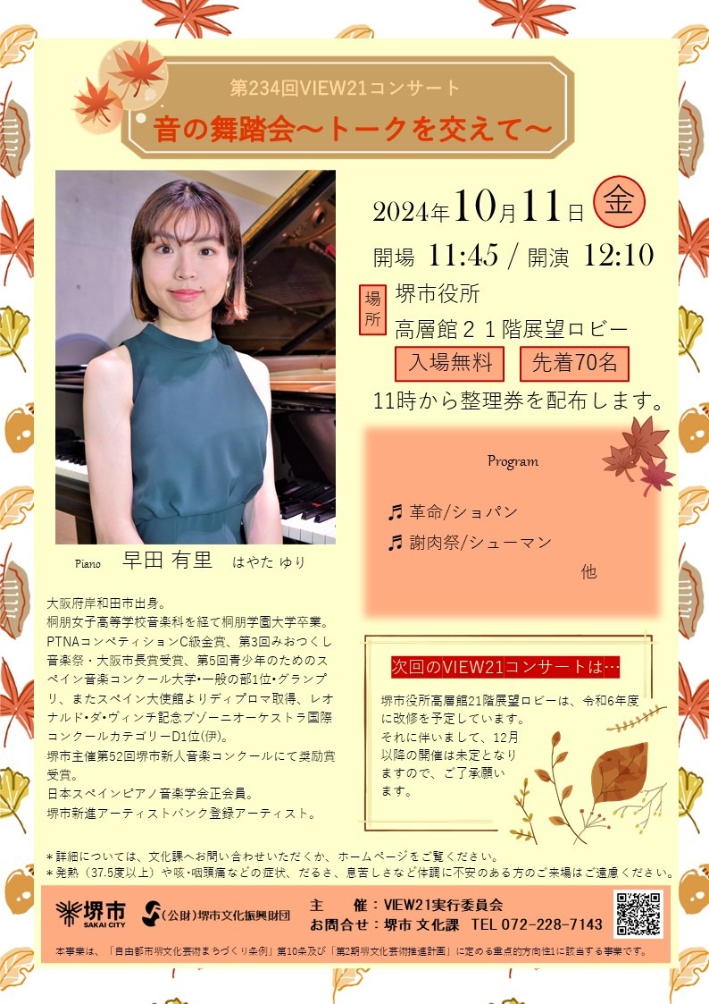 ピアノの早田有里さんが「VIEW21コンサート」に出演します!