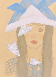 独特の色味と存在感が好きで、画材は天然岩絵具を中心に使っています。儚い夢やくだらない妄想のようなものをテーマにすることが多いです。