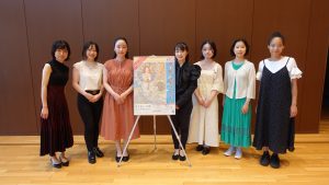 *写真左から、早田有里さん(ピアノ)、花田零さん(パーカッション)、戸村奈央さん(ピアノ)、井塞鈴菜さん(パーカッション)、浅野美月さん(ピアノ)、寺山真璃愛さん(ヴァイオリン)、鈴木こはるマケナさん(ピアノ)