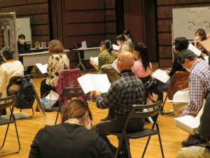 先生が合唱指揮者をつとめるモーツァルト記念合唱団からも歌い手が加わり、さっそく練習が始まりました。