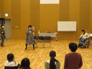 お互いに手探りで演技する演者グループに輪をかけて、混乱する観覧グループ。即興劇終了後の藤井さんの解説に笑ったり納得したり、和気あいあいとしたムードのなかで、あっという間に1日目が閉幕しました。