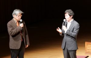 ピアノ修復まで約10分。川口さんからのご指名で、客席に座っていた茂木さんが再び舞台上へ戻って来られました。ピアニストにとってベートーヴェンの≪ソナタ≫はバイブルのように、指揮者・オーケストラにとってもベートーヴェンの≪交響曲≫は、音楽のあらゆる要素が詰まっていて、やはりバイブルなんだそうです。