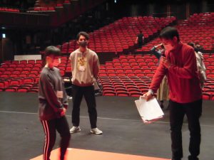 これまでは別の場所で稽古をしてきたので、実際の立ち位置や舞台上での距離感を確認しながらになります。