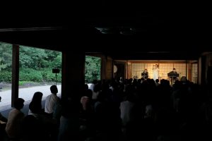 夕暮れ時、本堂(方丈)の中に深く響く平原まことさんのサックスから始まったライブは、