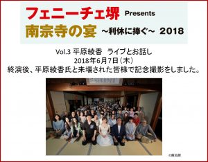 6月7日(木) 堺市南宗寺で開催した平原綾香さんのライブとお話の様子をお伝えします。