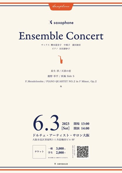 堺市新進アーティストバンク登録者の櫟本夏奈子さん(サクソフォン)がコンサートを開催されます♪