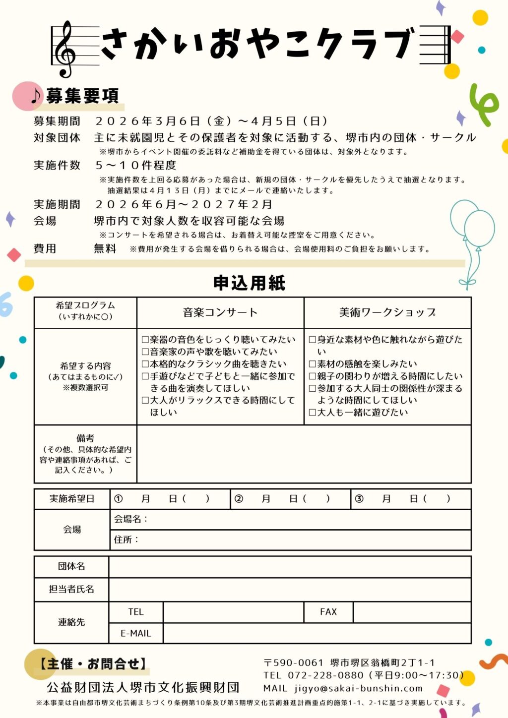 さかいおやこクラブ実施団体募集(令和8年度) – 堺市文化振興財団