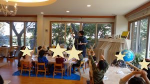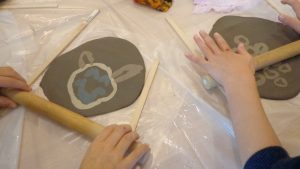 アートスタートプログラム実施場所:こひつじ保育園にて、中本亜紀さん(陶芸)が、「粘土でお皿をつくろう」を実施しました。