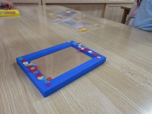 アートスタートプログラム実施場所:泉北若竹保育園にて、近江志織さん(立体・インスタレーション)が、「ストローでフォトフレームをつくろう」を実施しました。