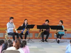 松葉彩さん率いる、うららサクソフォン・カルテットが、堺市内の認定幼稚園を訪問し、ワークショップを実施しました。