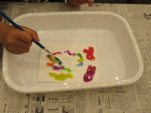 絵の具も色を混ぜて絶妙な色合いを作り出している子もおり、スタッフも関心しました。