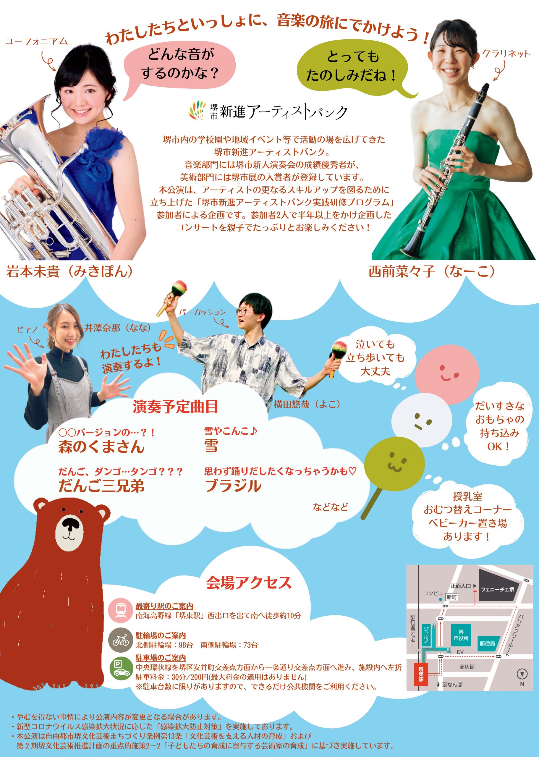 堺市新進アーティストバンク音楽部門の登録アーティストを対象とした、実践研修プログラム(ホール公演コース)の集大成となるコンサートのチラシが完成しました!