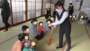 藤原朱里さんのサックスの音色で、普段の学校の音楽ではなかなか出会えない5拍子を体感します。
