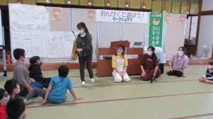 森さんの美しい歌声と、この曲のしっとりした雰囲気を、子どもたちも敏感に感じ取っている様子で、じっと森さんの演奏に耳を傾けていました。