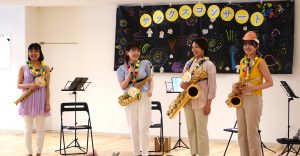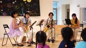 堺市内の保育園にやってきたのは、サックス四重奏のお姉さんたち。