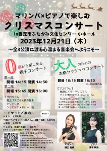 「0歳から楽しめる親子コンサート」「大人のための本格クラシックコンサート」の2公演ありますので、お近くの方はぜひお越しください。