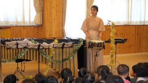 コンサート後には、園からの希望で、皆が演奏する打楽器の叩き方のレクチャーも。