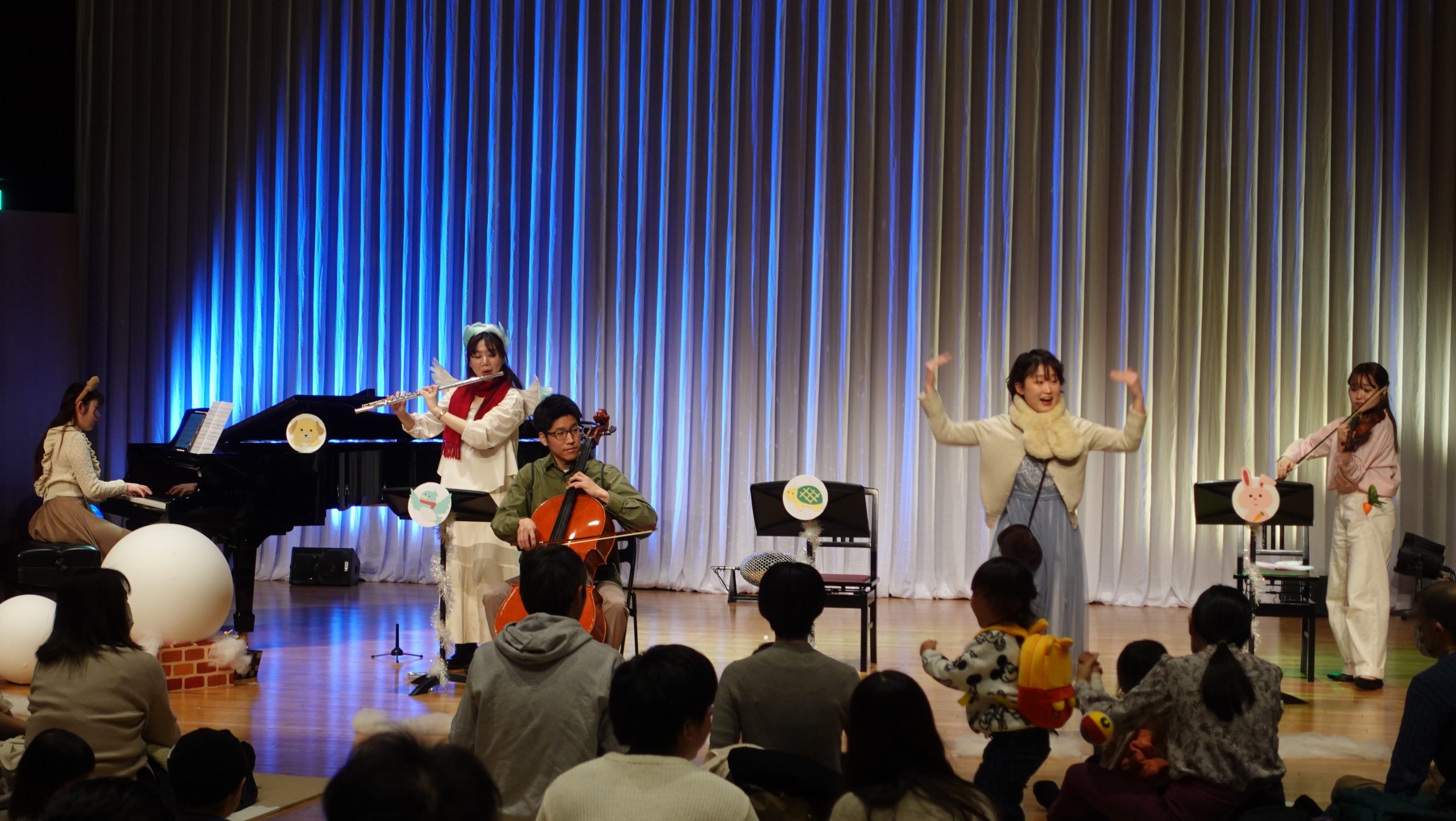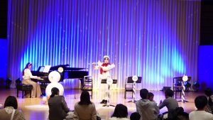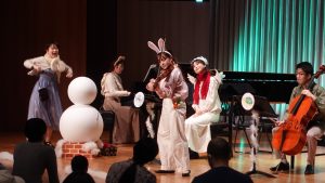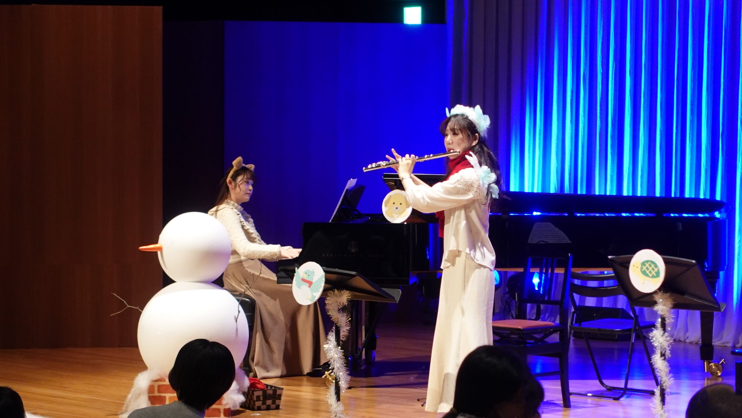 去年の8月頃から研修受講者の伴菜生さん(フルート)と山口珠奈さん(ピアノ)とで企画した「0才からのおんがくかい どうぶつたちとゆきだるま」の本番を迎えました。