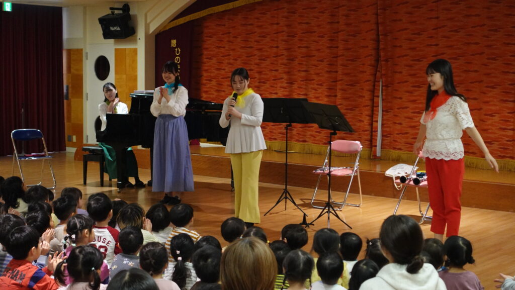 黒田桃子さん(堺市新進アーティストバンク)がピアノを奏で始めると、ソプラノの安江陽奈子さんが登場、『幕をあける歌』の始まりです。