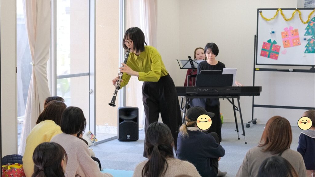 「アメイジング・グレイス」でクラリネットの深い音色を聴いたあとは、「にじのむこうに」で楽しく終わりましょう。アンコールとして、クリスマスらしい曲もお届けしました。