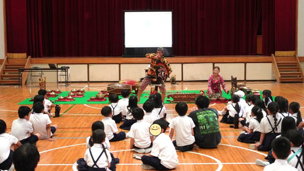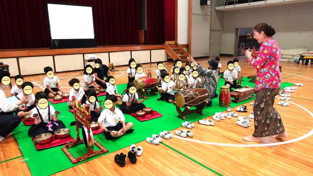 今回は小学校1~3年生の皆さんと一緒に、インドネシアに伝わる踊りと音楽で、おまつりをつくりました。