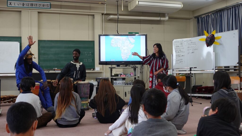堺市内の小中学校にアーティストを派遣し、児童・生徒が芸術を体験する「さかいミーツアート」。 今回は小学校6年生を対象に、アフリカ出身のアーティストと共に音楽を奏でる体験を通して、異文化への理解を深めることをめざしたプログラムを実施しました。