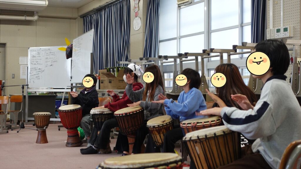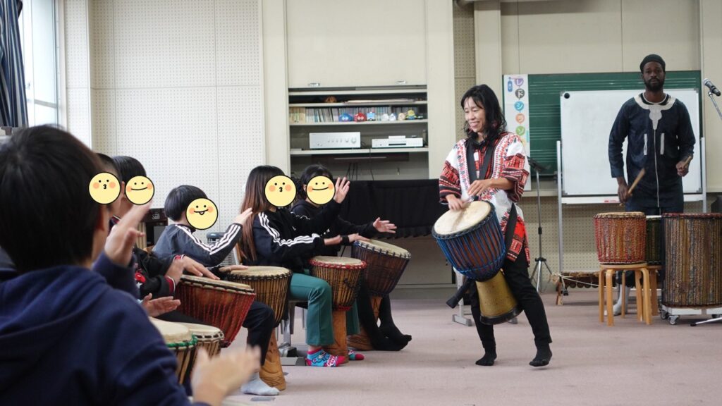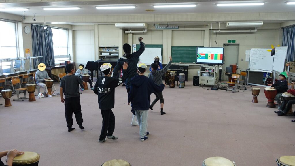 実は学年のこどもたちは、昨年5年生のときにもジェンベを体験しています。その後も自主的にアフリカの言語や文化について、調べてくれていたそうで、今回、2回目のワークショップが実現しました!