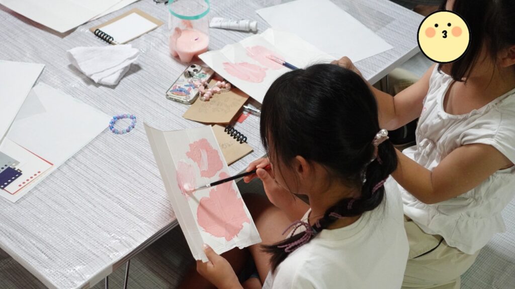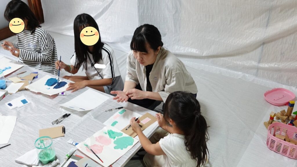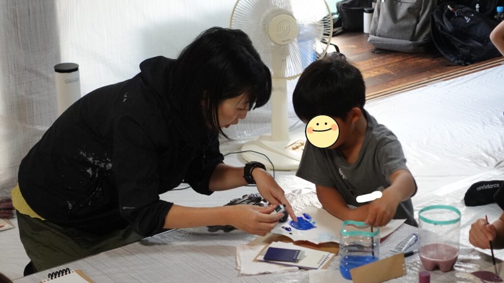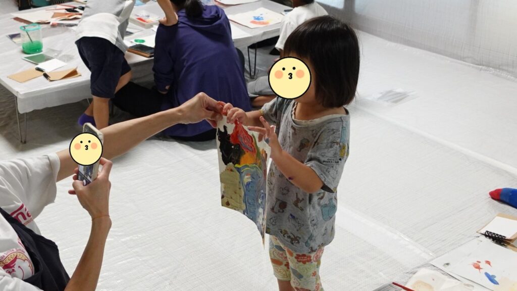 その一方で、今回は低学年の子や、初めて絵の具を触るような未就学の子たちも、たくさん参加してくれています。絵の具を混ぜること自体や、塗り広げていくこと自体に興味を持つなど、その子たちも自分なりの楽しみ方を見つけているようです。