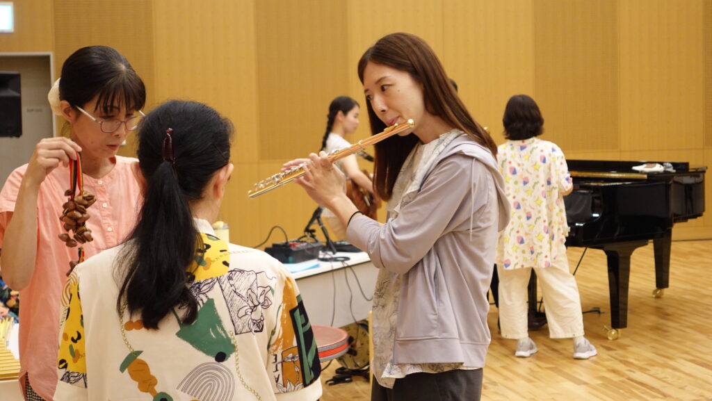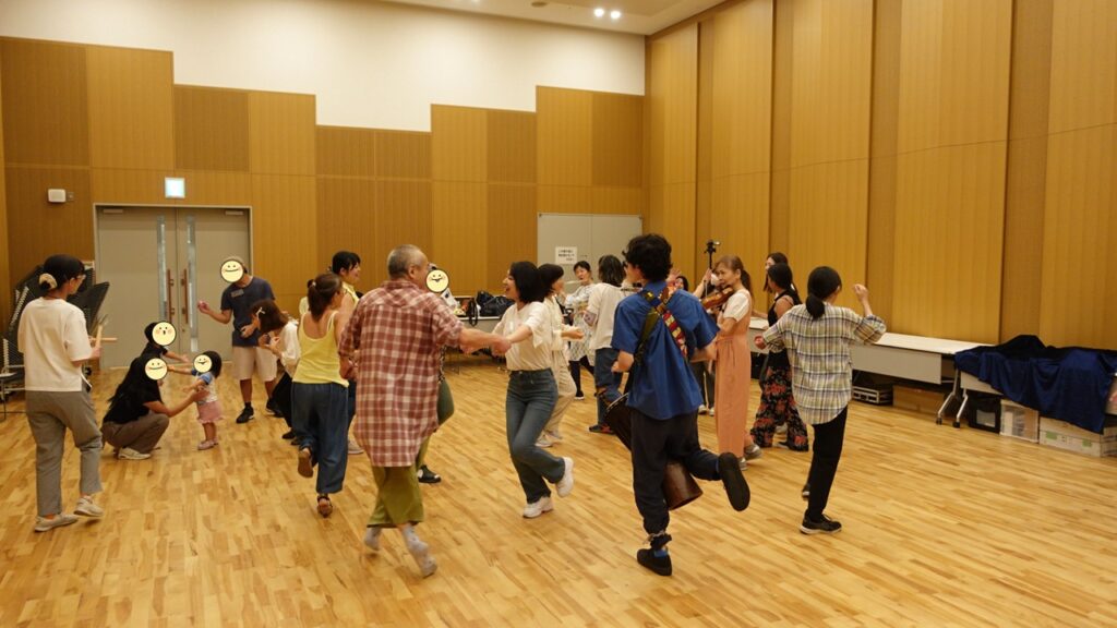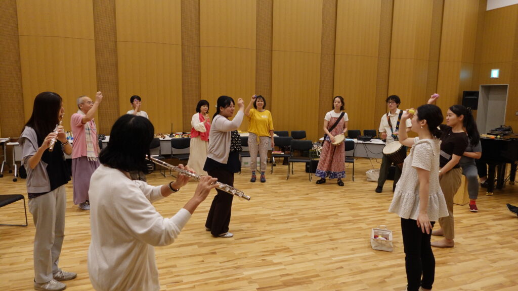 受講生たちは、実際の対象を目の前に緊張もあったかと思いますが、この短期間で学んだスキルを発揮することができました。このワークショップに参加してくれた子どもから大人まで、そして受講生自身も、音楽に身をゆだねて心躍らせたり、しみじみと味わったり、新しい音を発見したりできた場だったと思います。
