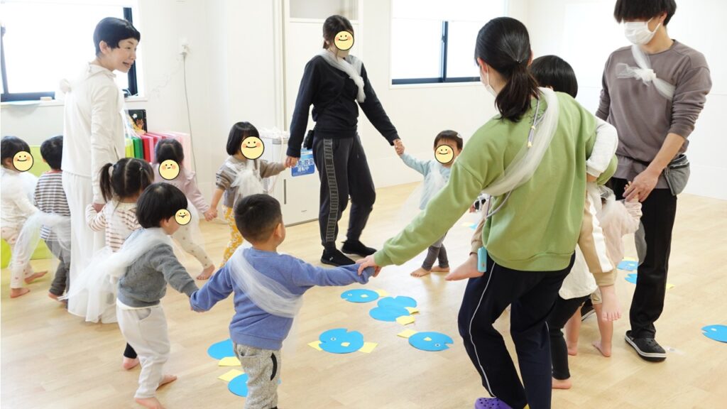 みんなで手を繋いでぐるぐるまわって、おさかなさんとも一緒に踊りました。