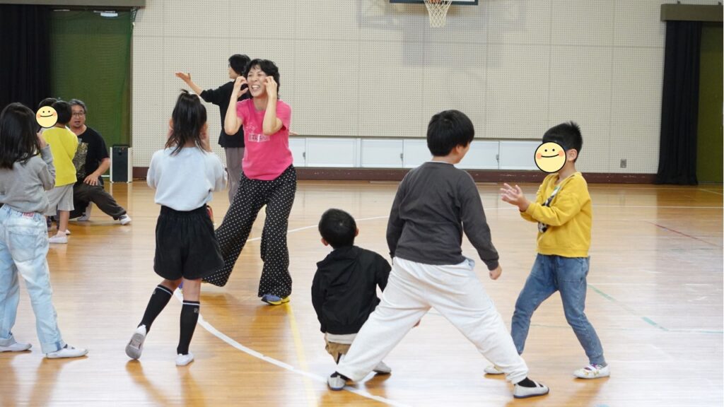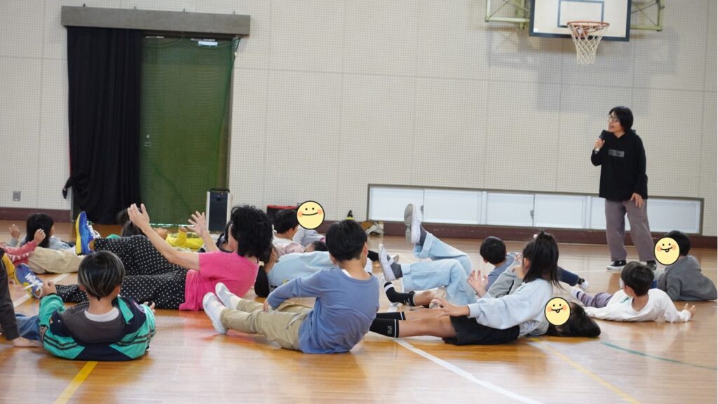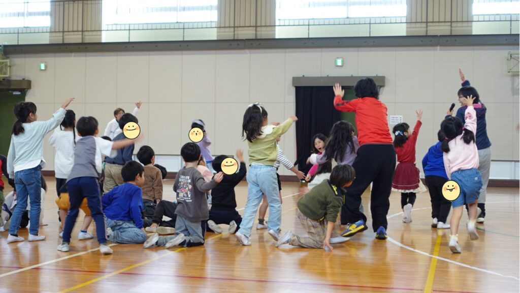 恥ずかしがって一緒に動いてくれないかも、という講師の不安を吹き飛ばすほど大きな声とダンスが体育館に広がりました。