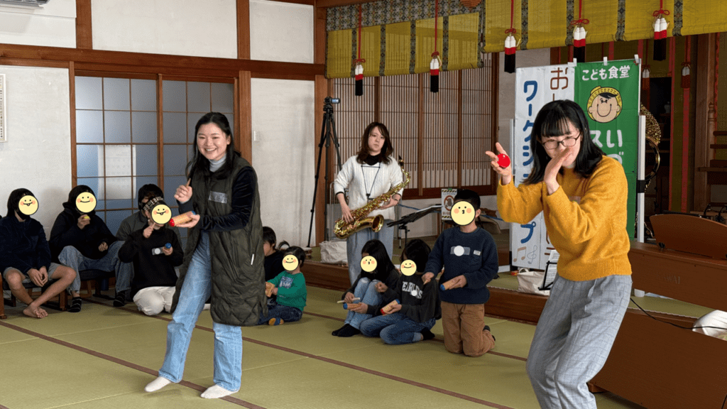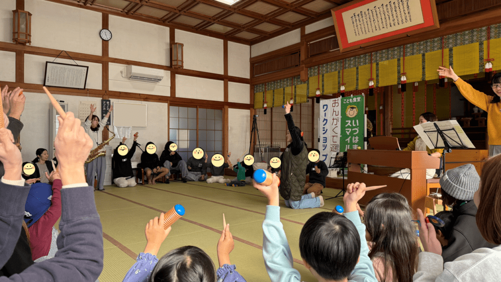いづはまスマイル食堂で、古橋果林さんと継続して実施している音楽ワークショップ。