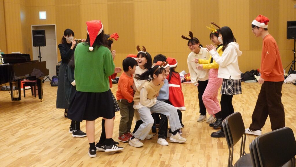 Home 活動報告 合唱団活動報告 report 文化芸術振興事業 活動報告 合唱団活動報告 2023/12/25 年内最後の活動日の昨日はクリスマス会を行いました! 団員が企画したゲームやプレゼント交換を行い、とても盛り上がりました。 後半は保護者の方にも来ていただき、コンサートの時間です。 今年は4つのグループに分かれて、クリスマスをテーマとしたミニミュージカルの発表もありました!台本と演出もグループごとに自分たちで考えました。来年の定期演奏会に向けての第一歩です。 年が明けると1,2月は大きな本番が3つも続きます。 2024年も楽しく活動していきましょう♪ 前のページへ戻る