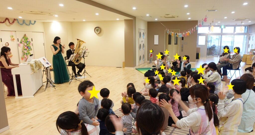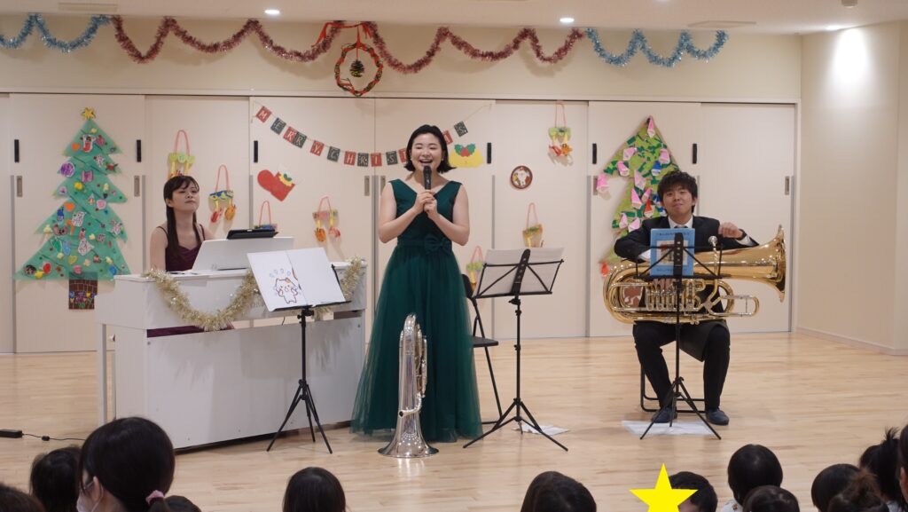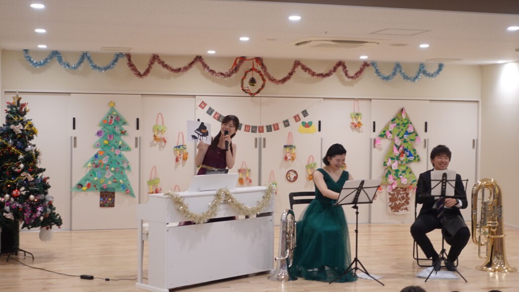今日は12月のコンサートということもあり、「あわてん坊のサンタクロース」や「たき火」「雪」など冬の曲をたくさん楽しみました。