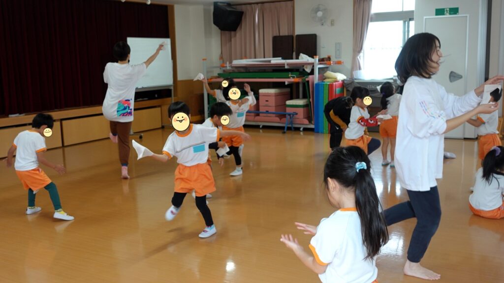 予測できないティッシュの動きをあわせていく面白さを子ども達も全身で感じてくれたようです。