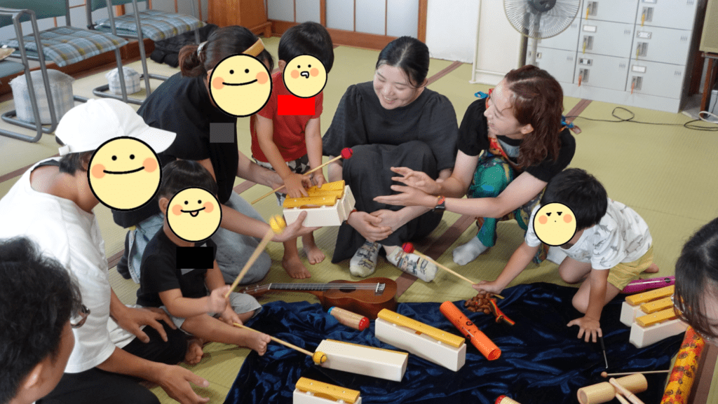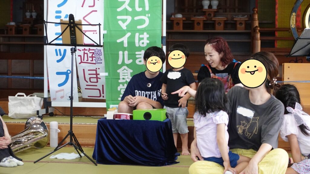 いづはまスマイル食堂で、古橋果林さんと継続して実施している音楽ワークショップ。