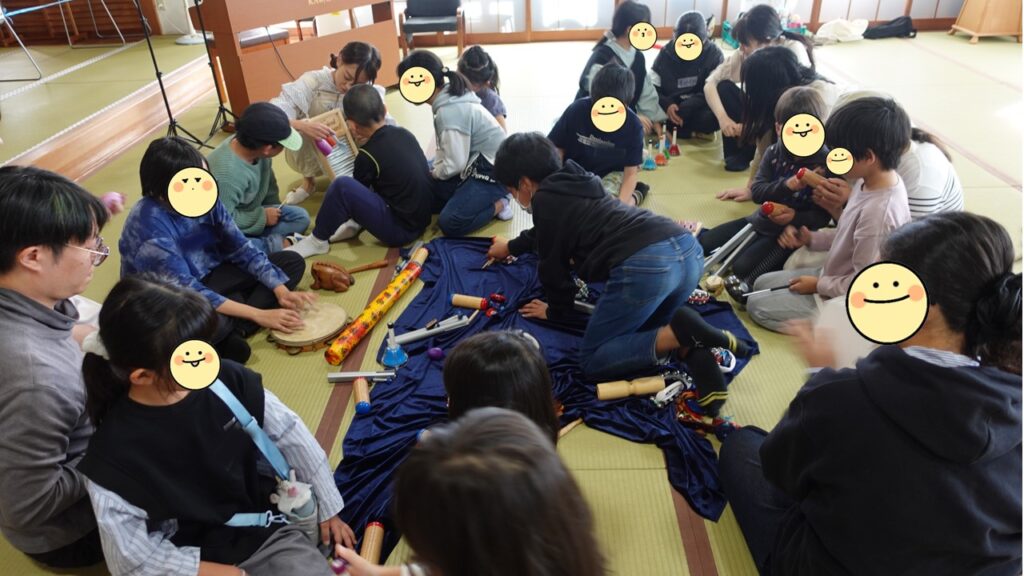休憩をとりながら、いろいろな楽器で音遊びが始まりました。