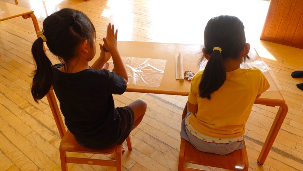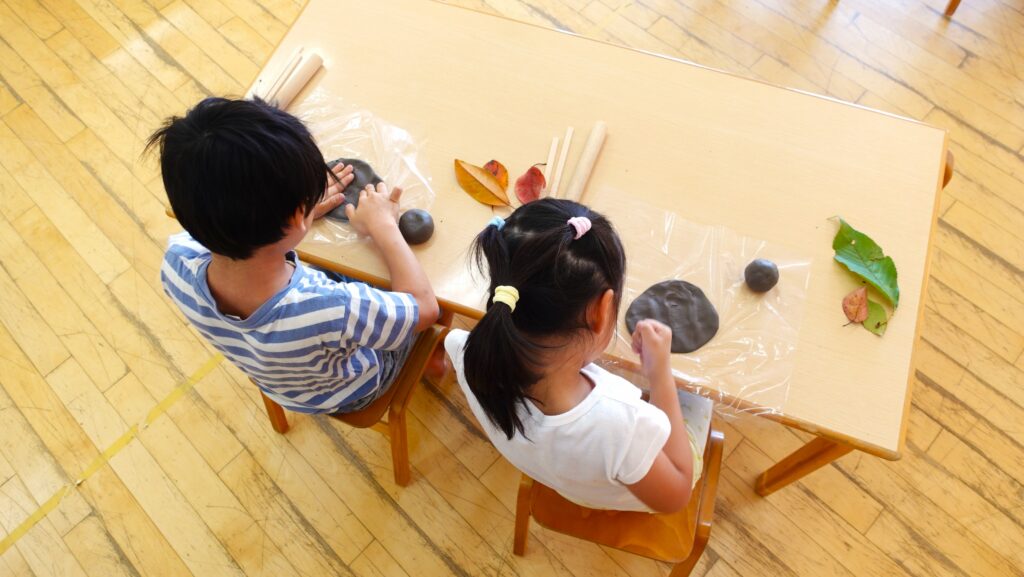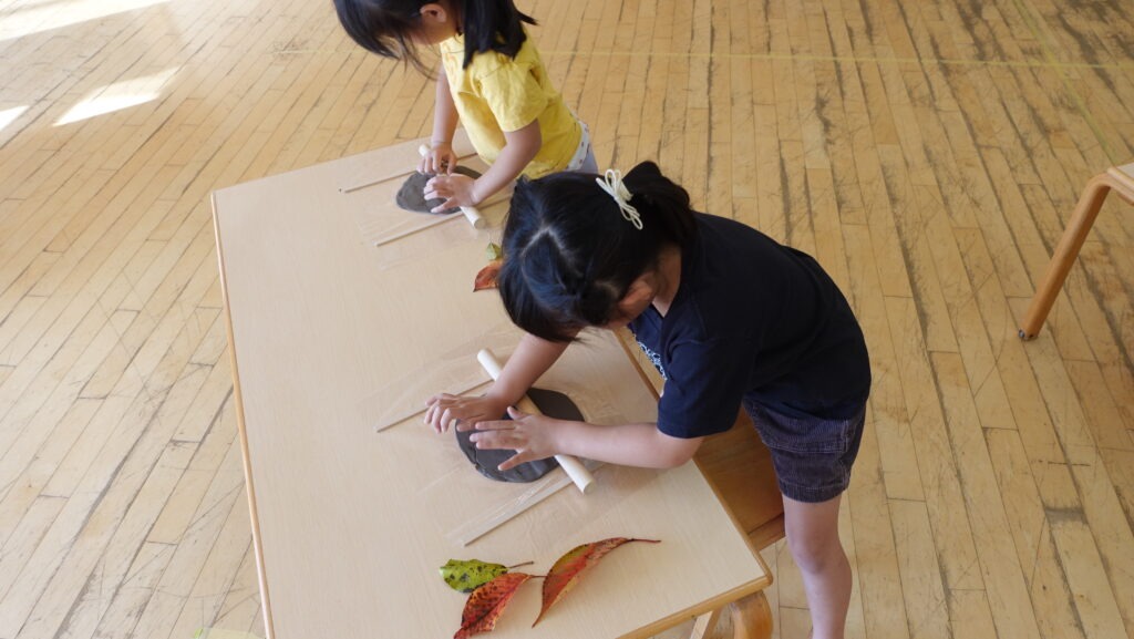 最初は、手に粘土がついて汚れが気になっていた子どもたちでしたが、