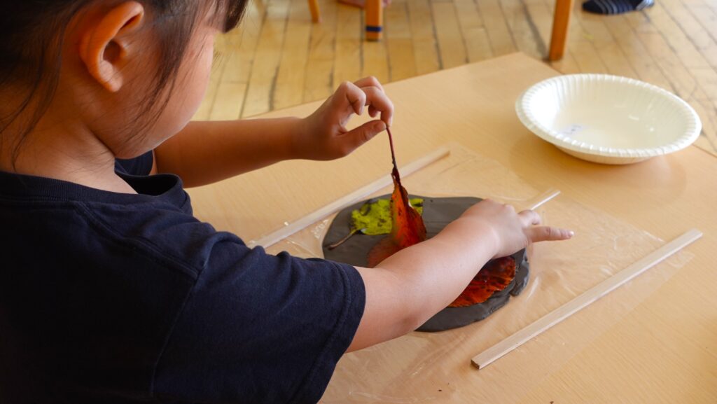今回は、陶芸家の中本亜紀先生による、葉っぱを使ったお皿づくりをご紹介します。