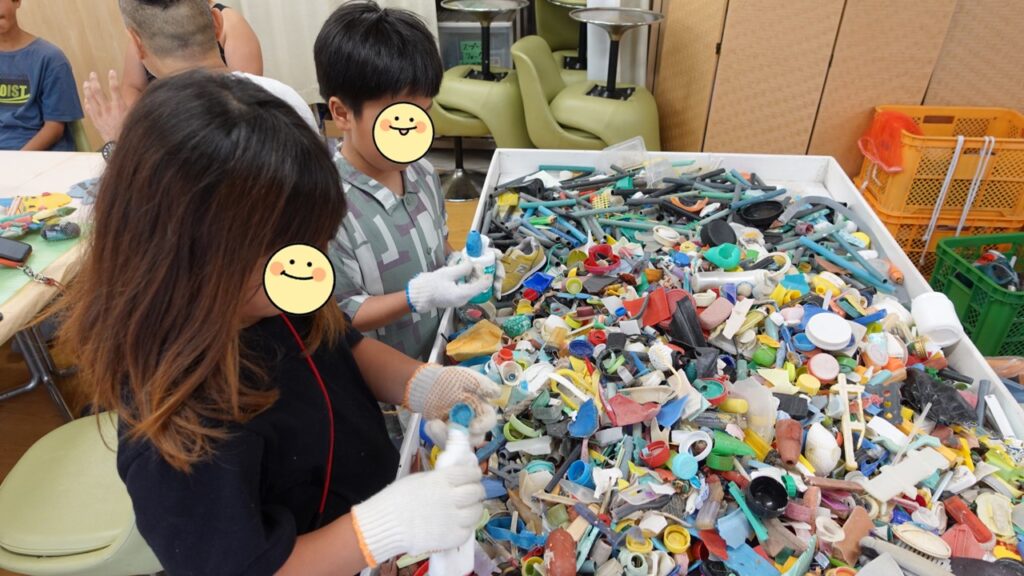 早めにやってきた子は、どんなゴミがあるか、じっくりみてみます。
