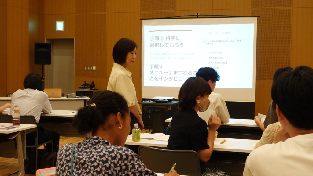 音楽や芸術がどのように役立つかは、教育や福祉、医療、地域創生など、分野によって異なります。音楽家のやりたいことやできることよりも、届ける相手を主語にして音楽を届けることが大切であることを学び、最後はヒアリングをもとに相手の立場に立って作品を贈るワークを行い、その考え方を体験しました。