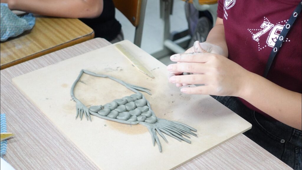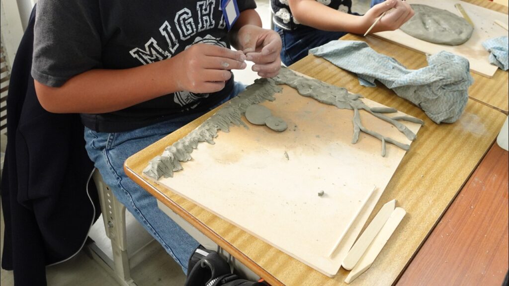 絵の具などを使って描く絵とは違って、何度もやり直せる粘土を使うことで、作ってはやり直すを繰り返しながら、それぞれのイメージをかたちにすることができました。