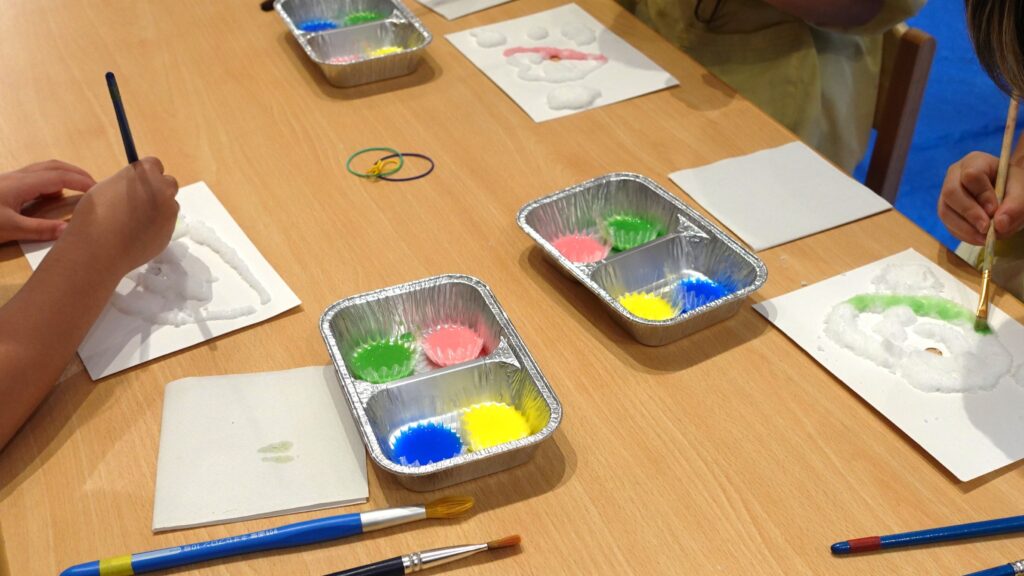 今回は、造形体験プログラムから「ソルトペインティングで時計をつくろう」をご紹介します。