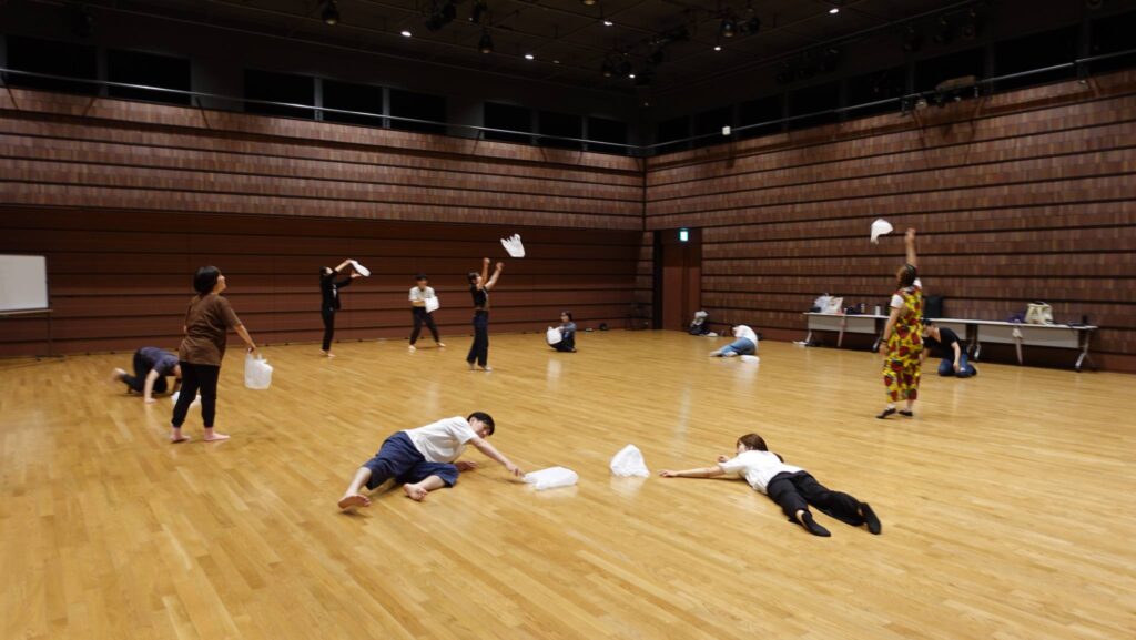立ったり、座ったり、寝転がったりするうちに、自然と受講者の動きが柔らかく変化していき、より自由な表現へと変わっていきました。