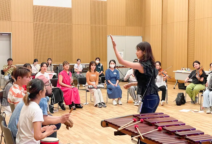 財団事務局の事業課では、市内小学校・中学校・こども食堂・福祉施設等に芸術家を派遣して、地域の多様な人々とともにワークショップやコンサートを実施しています。また、こうした場を生み出すことのできるアーティストやコーディネーターの育成・支援にも力を注いでいます。